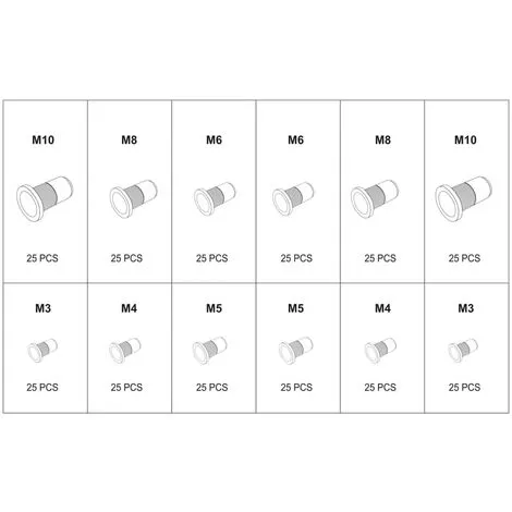 Ces écrous à rivet de la marque YATO contiennent un mélange de 300 pièces de différentes tailles.