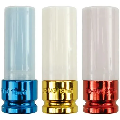 L’ensemble de douilles à impact a une finition chromée en 3 couleurs pour différencier facilement les tailles.