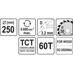 YATO Lame De Scie Circulaire Ø250 Mm – 60T – Diamètre Intérieur 30 Mm