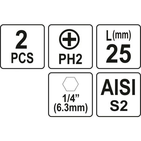2 embouts 1/4″ 25mm PH2