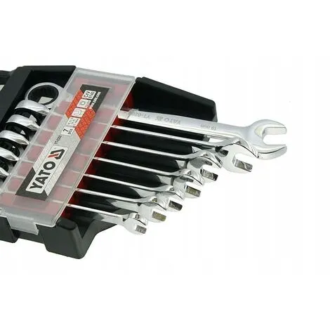 Un set de cliquet pratique et compact de la marque YATO. L’ensemble est fabriqué en chrome poli et le type de cliquet comporte 72 dents. Les tailles des clés sont comprises entre 10 et 19 millimètres et leur longueur va de 160 à 245 millimètres.